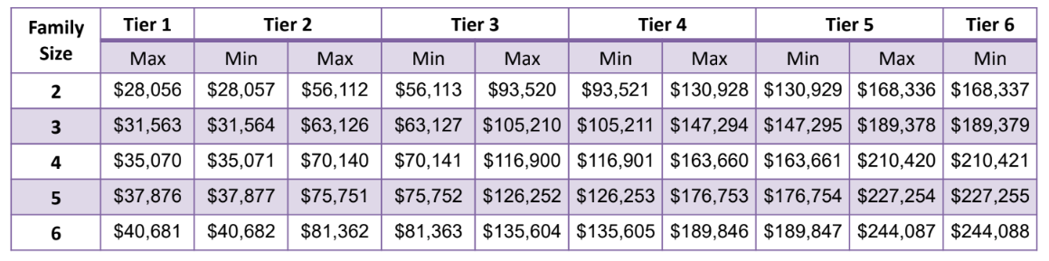 ● Tier 5 is between 141% and 180% of the Median Family Income